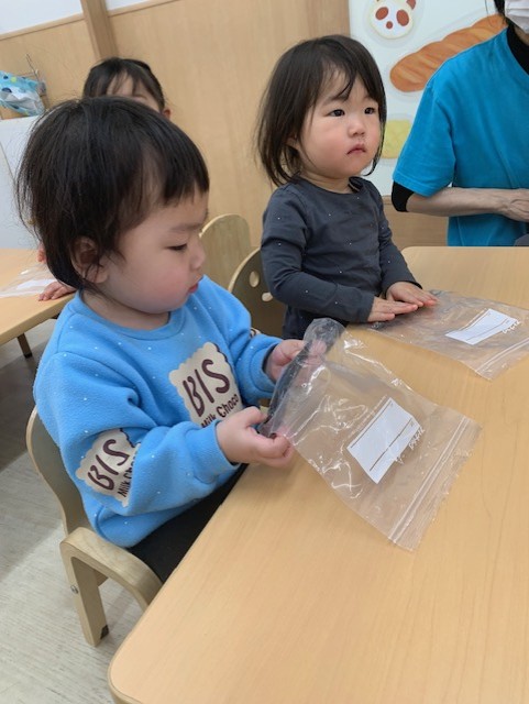 ★食育(2025.9.11) テーマ『お豆腐を作ってみよう!』 オイシックスの付録に付いていた、お豆腐作りキッドでお豆腐作りに挑戦!お味噌汁に入っている、この白い食べ物はなーんだ⁈ ピンポーン!そうお豆腐だよ☺ お豆腐は大豆からできているよ 触ってみよう 豆乳に、にがりを加えて電子レンジで加熱🔥 美味しそうなお豆腐ができました! 試食したみよっちが、とっても美味しいって言っていました😋 みんなも、給食で美味しいお豆腐食べようね🥄
