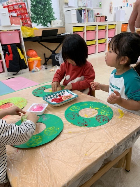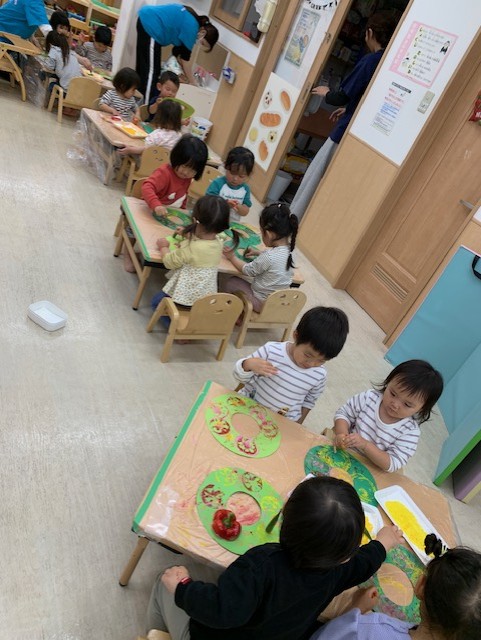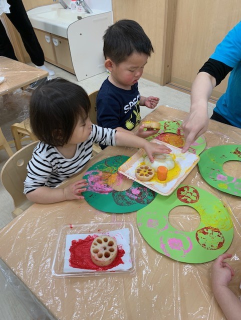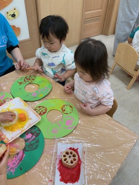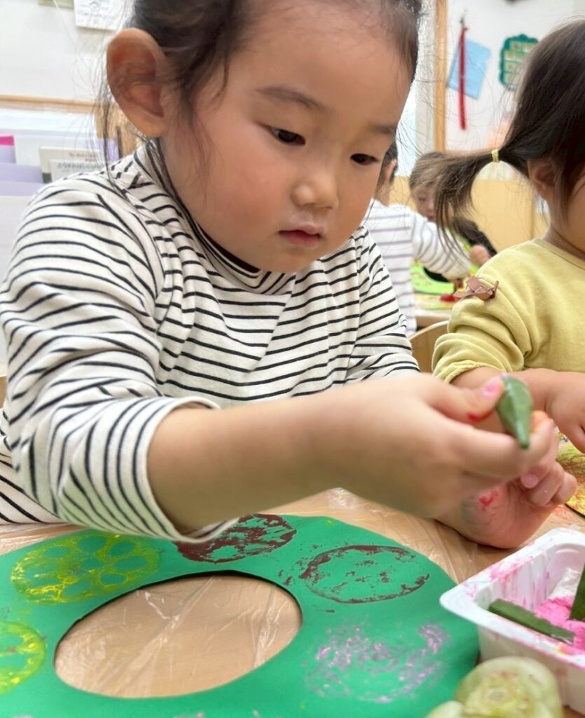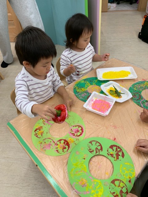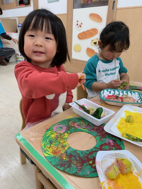 このお野菜を使ってクリスマスリースにスタンプしようー🎶