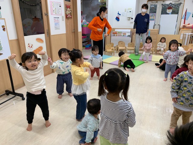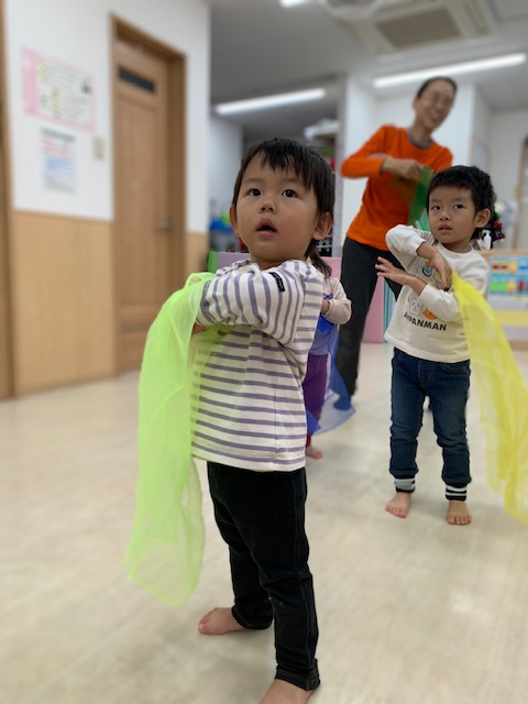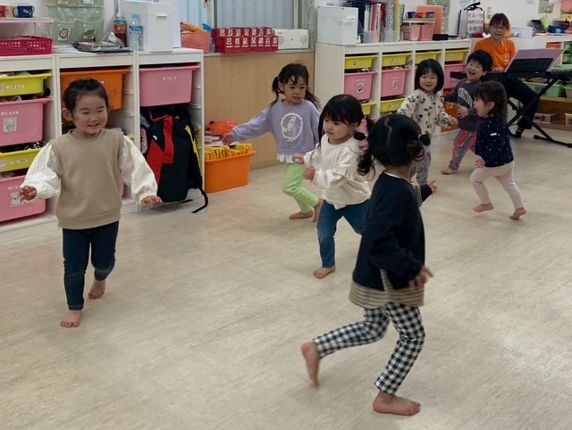 音楽に合わせて体をいっぱい動かしてリトミック楽しいね🎵