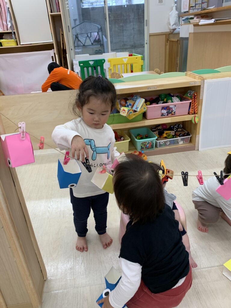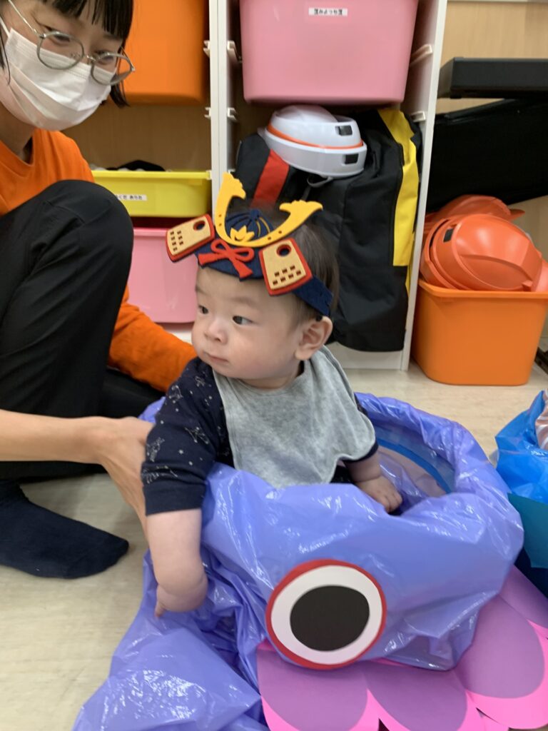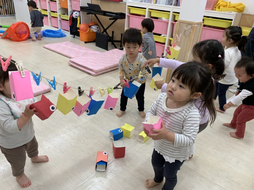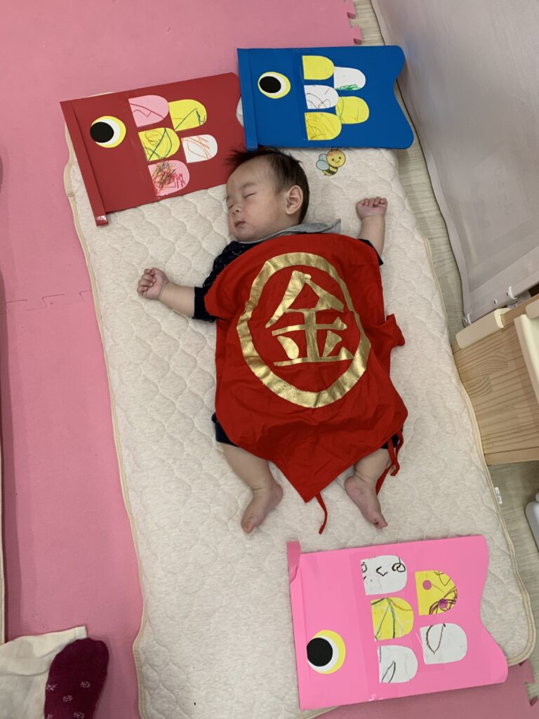ようちゃんが、可愛いこいのぼりをセッティング🎏