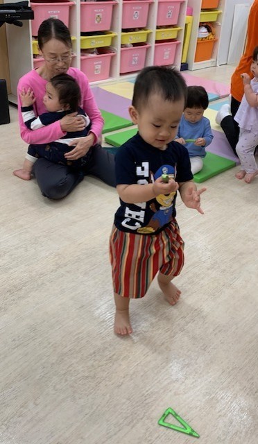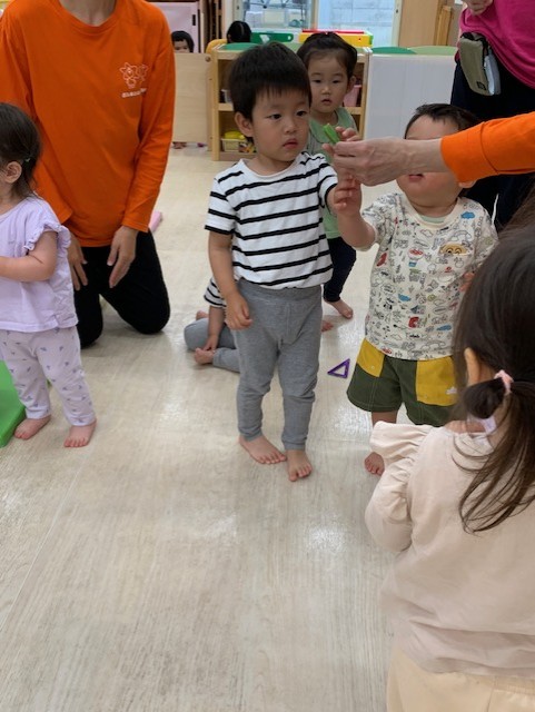 今日はリトミックの日でもありました♬『バスに乗って揺られてるゴーゴー✊♪』